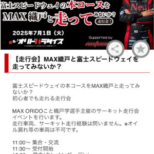 ~ MAX織戸と富士スピードウェイを走ってみないか? – 2026年5月 –